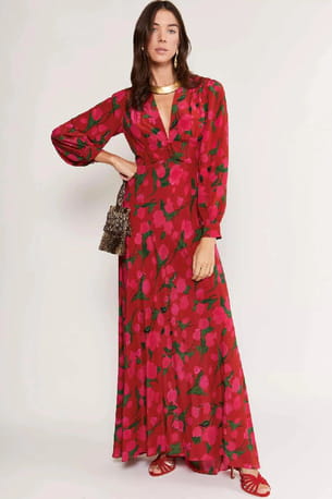 Robe en soie rouge à fleurs © Rixo