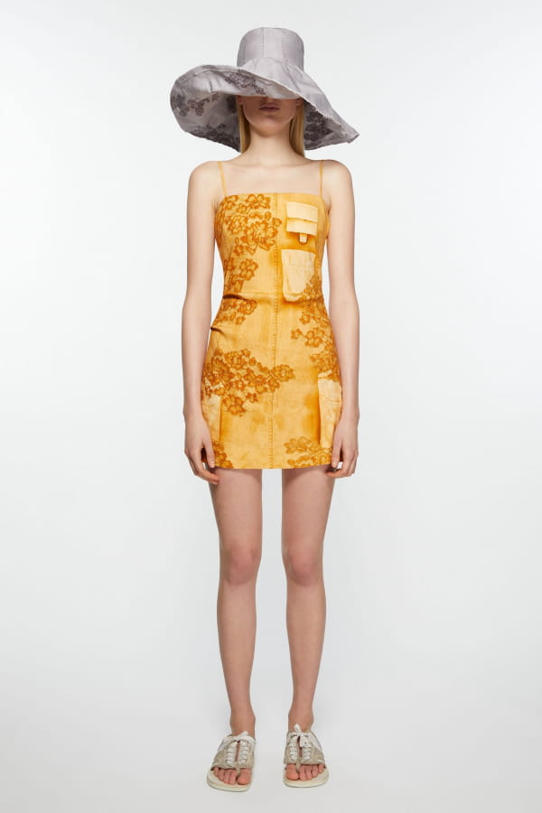 Robe jaune à bretelles imprimé trompe-l'œil d'Acne Studios