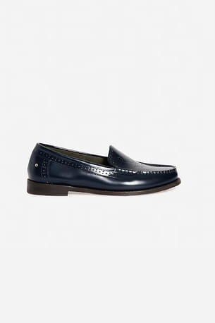 Mocassins bleu marine à motifs perforés en cuir glacé de Vanessa Bruno