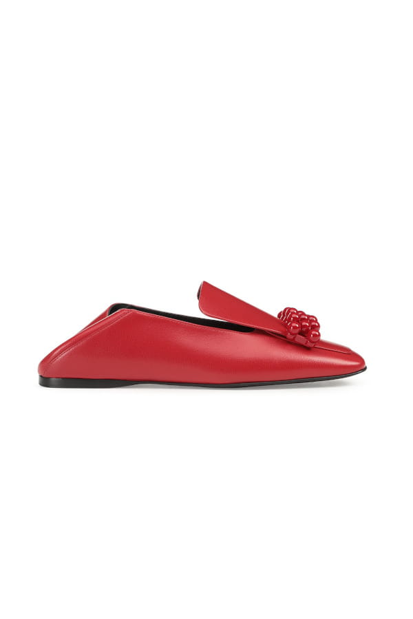 Mocassins rouges à bouts carrés avec appliques sphériques "Carminio" de Sergio Rossi
