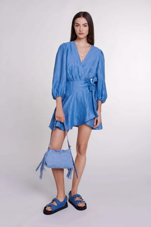 Robe portefeuille bleue en lin de Maje