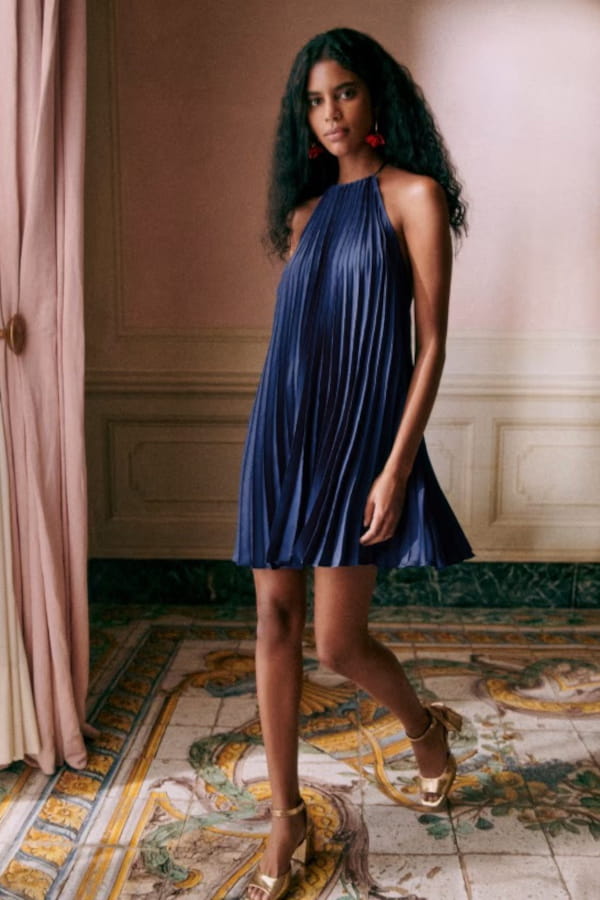 Robe courte plissée bleu foncé "Matilda" de Sézane