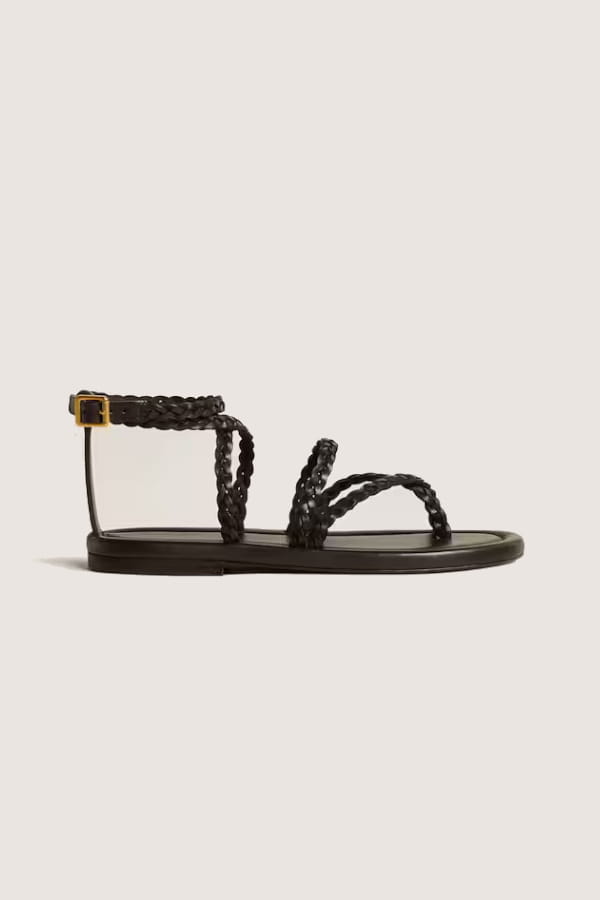 Sandales plates tressées en cuir noir "Penelope" de Golden Goose