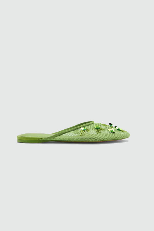 Chaussures en maille filet verte à perles décoratives de Mango x Siedrés