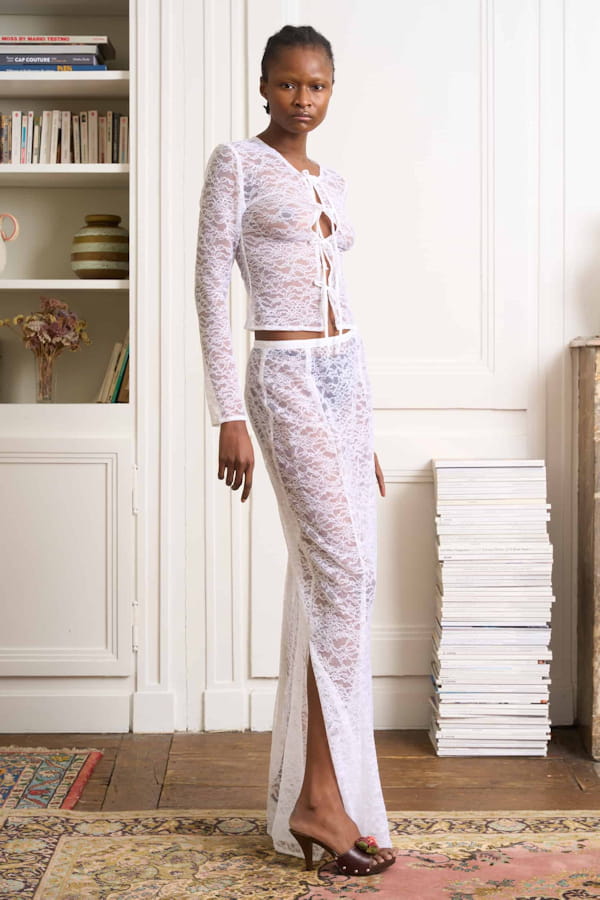 Longue jupe transparente en dentelle de Calais "Garance" de MaisonCléo