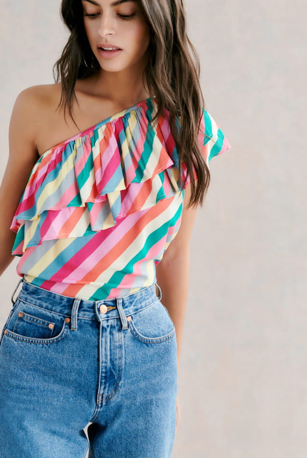 Top rayé à volants