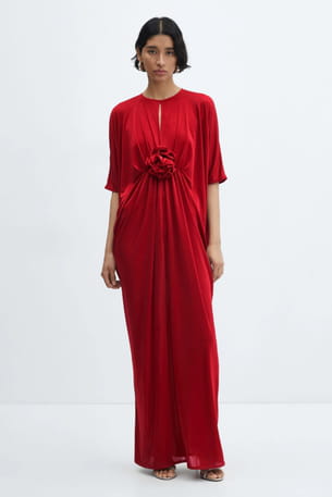Robe rouge maxi fleur de Mango