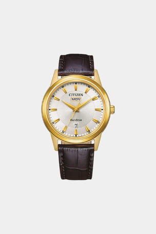 Montre bracelet noir en cuir au cadran rond doré de Citizen