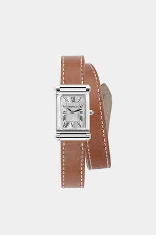 Montre à long bracelet en cuir marron et cadran rectangulaire de Herbelin