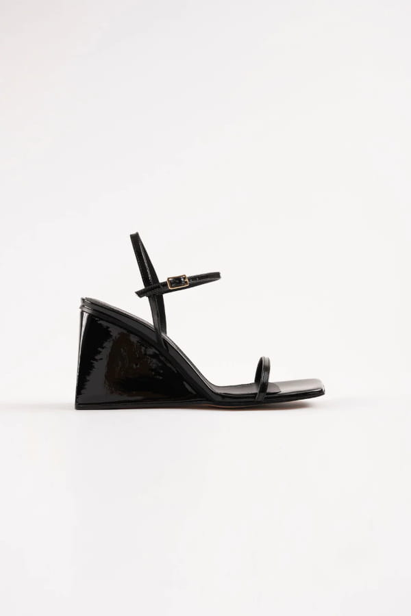 Sandales compensées à brides en cuir verni noir "Mirta" de Souliers Martinez