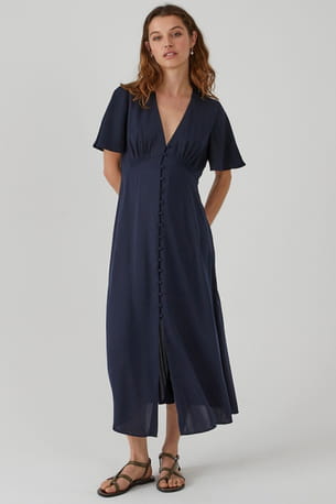 Robe longue évasée encolure V