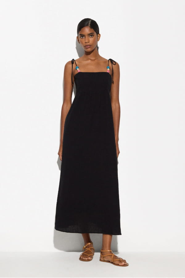 Robe fluide noire à bretelles en perles de Parfois