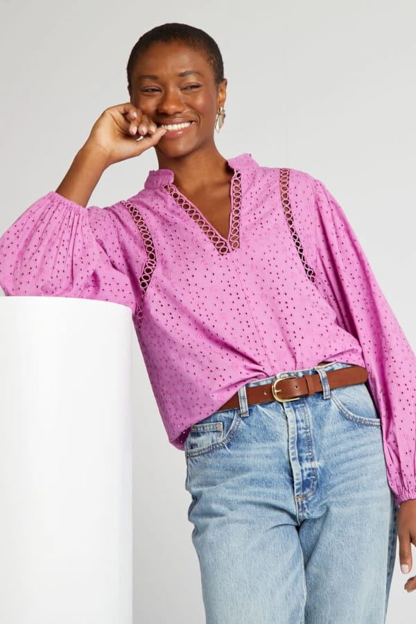 Blouse rose brodée et ajourée avec encolure V de Kiabi