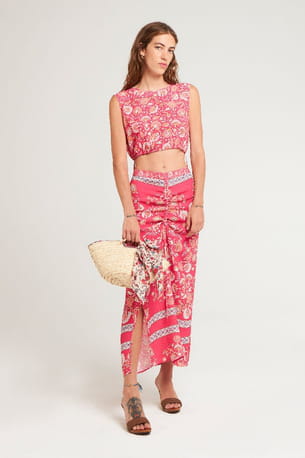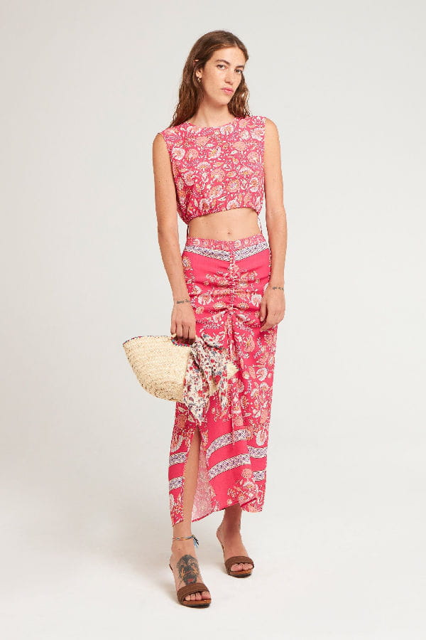 Jupe rose imprimée "Dandy" d'Antik Batik