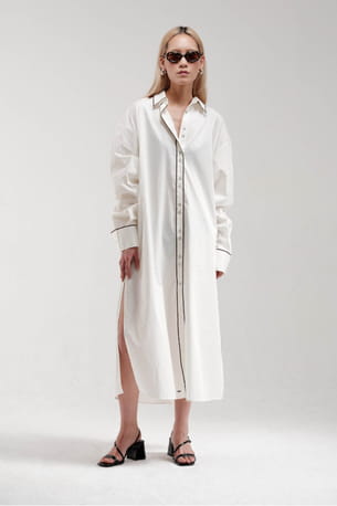 Robe chemise blanche aux détails bruns "Greekist" de Valentine Witmeur