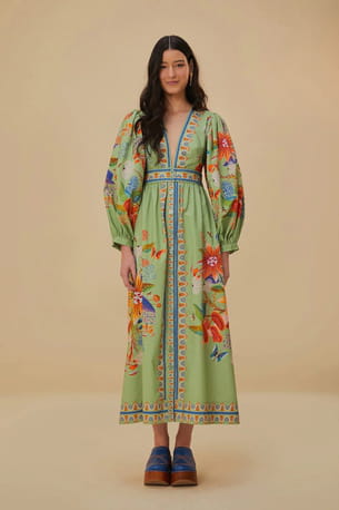 Robe longue verte avec broderies colorées "Bright Yard" de Farm Rio