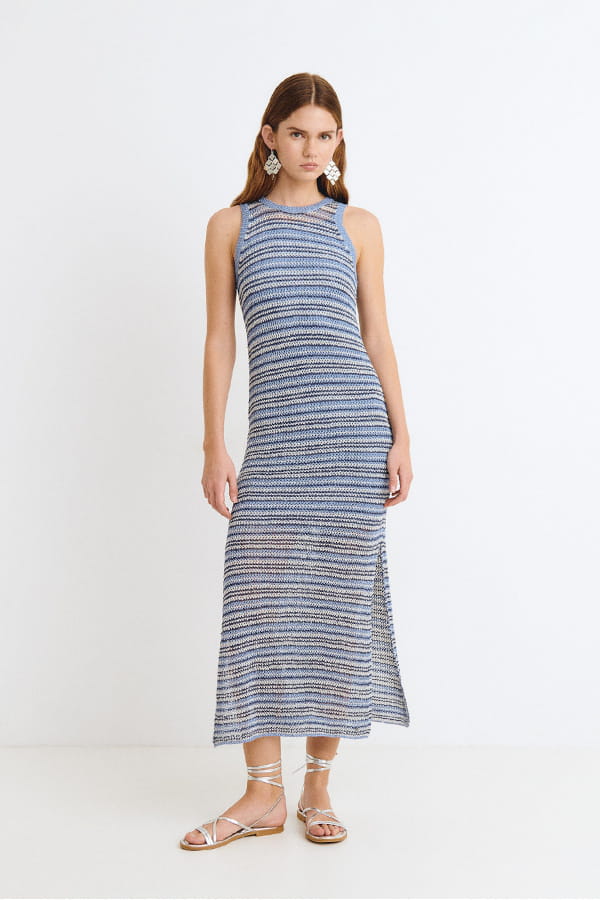 Robe rayée avec fil métallisé à encolure américaine de Brownie
