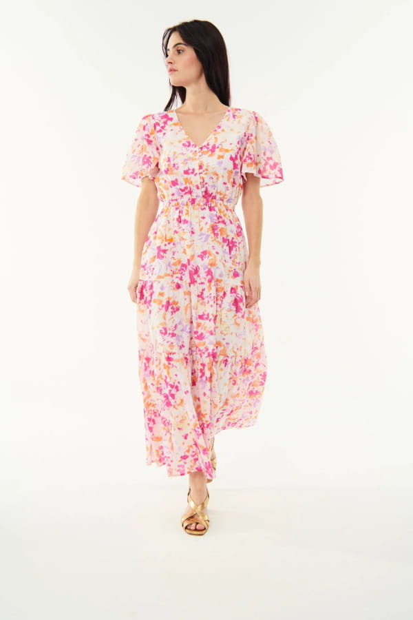 Robe volantée florale à découpe ajourée au dos "Soinou Agafay" de Des Petits Hauts