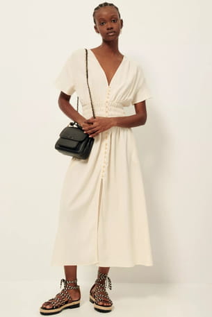 Robe mi-longue smockée à la taille en crêpon de coton © Sessùn