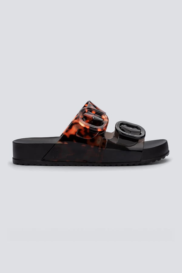 Mules noires à brides écailles de tortue de Melissa