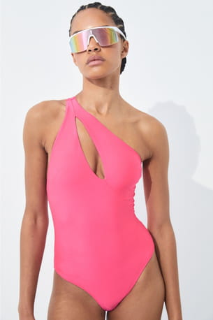 Maillot de bain une pièce asymétrique rose à découpe de H&M