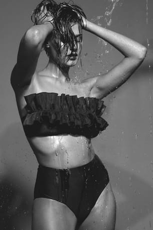 Maillot de bain deux pièces noir froncé "Indya" de GirlsMustHave
