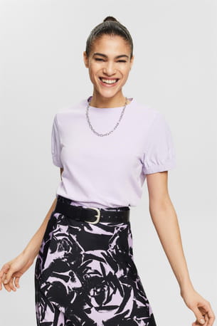 T-shirt lilas à manches élastiquées d'Esprit