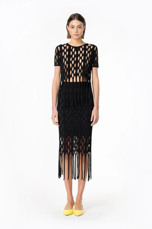 Top noir ajouré à franges de Pinko