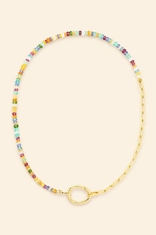 Collier de perles multicolores et chaîne joaillerie en or jaune de Mellerio