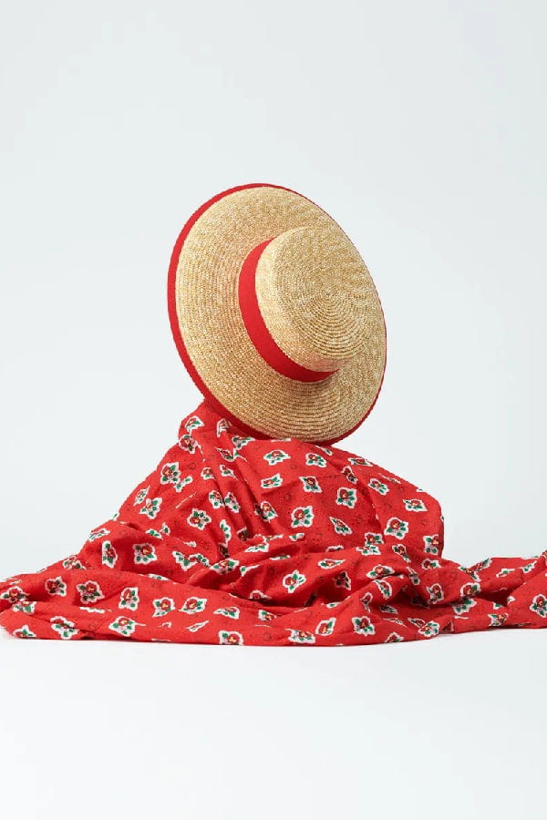 Chapeau en paille avec ruban rouge © Souledaio