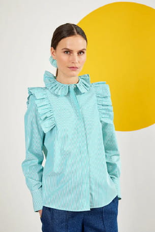 Chemise à fines rayures et volants