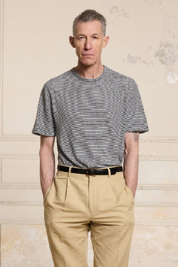 T-shirt en coton et lin à rayures