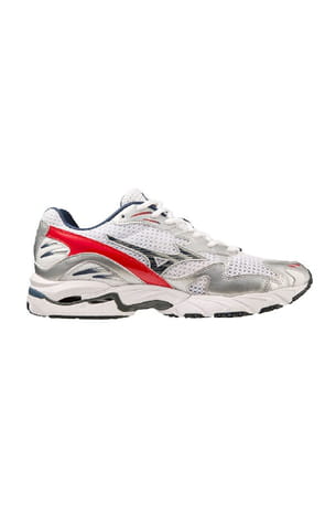 Baskets rouge et argent "Wave Rider 10" de Mizuno