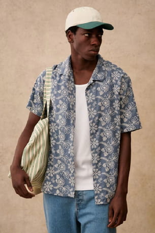 Chemise bleue brodée "Holt" d'Octobre Editions