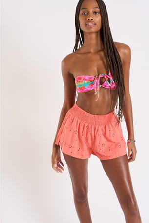 Short ajouré orange à taille élastique "Maona" de Banana Moon