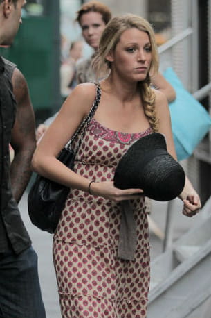 L'héroïne de Gossip girl adopte au quotidien un look bien plus cool que son personnage de Serena Van der Woodsen. Avec sa longue robe imprimée, Blake Lively se la joue hippie chic, surtout avec sa natte jetée négligemment sur l'épaule.