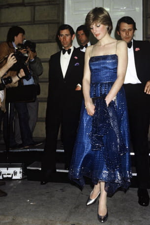 Lady Diana en robe longue bleue à fines bretelles ©  CHERRUAULT/SIPA