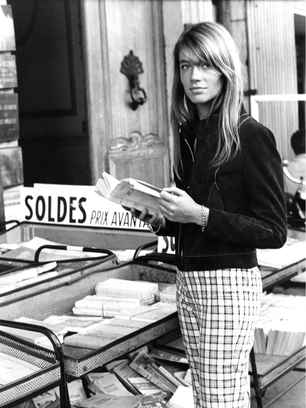 Françoise Hardy en veste et pantalon tartan pendant le tournage du film Grand prix de John Frankenheimer à Clermont-Ferrand en mai 1966.