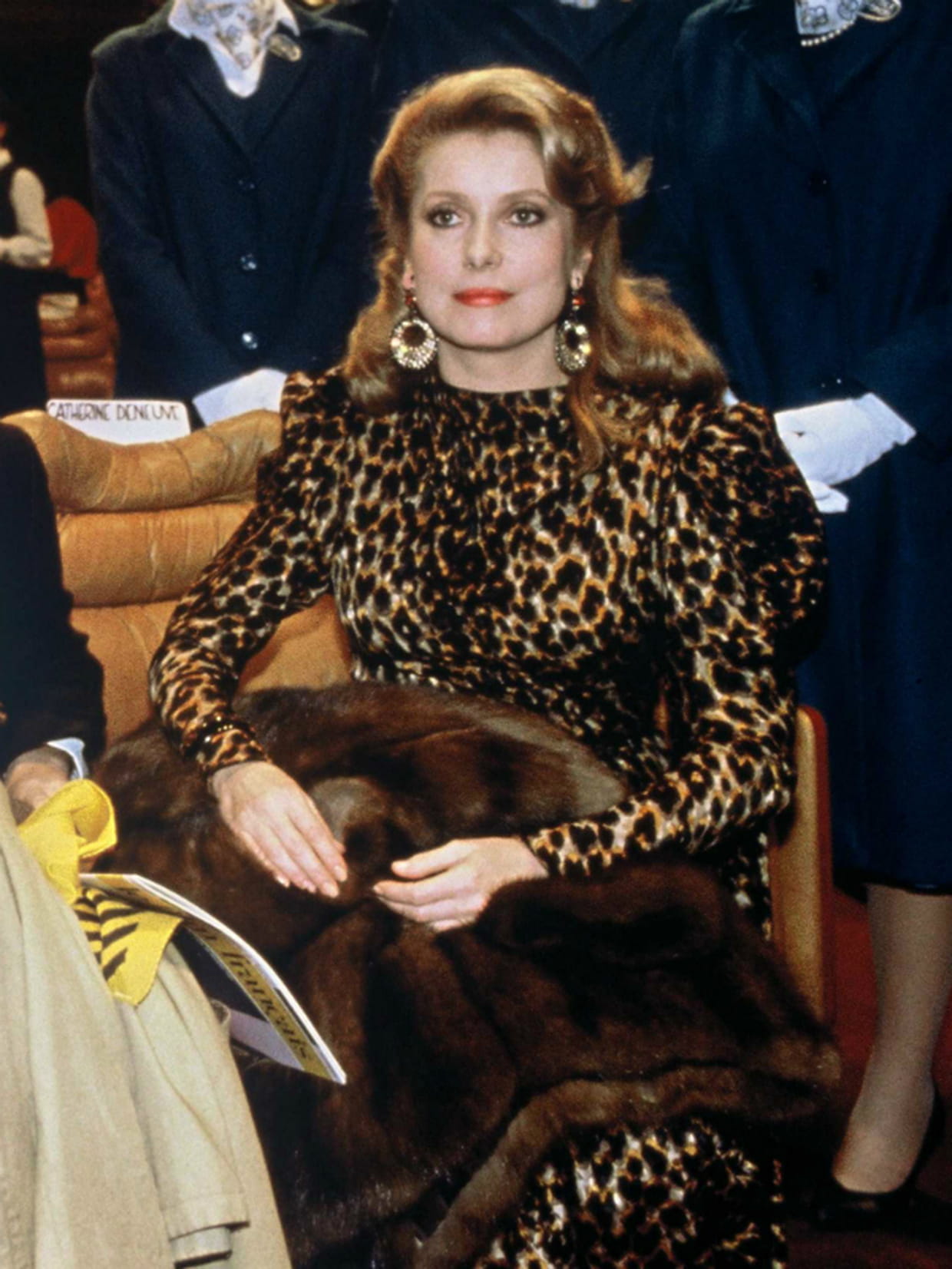 Catherine Deneuve en robe léopard à la 8ème cérémonie des César à Paris le 26 février 1983.