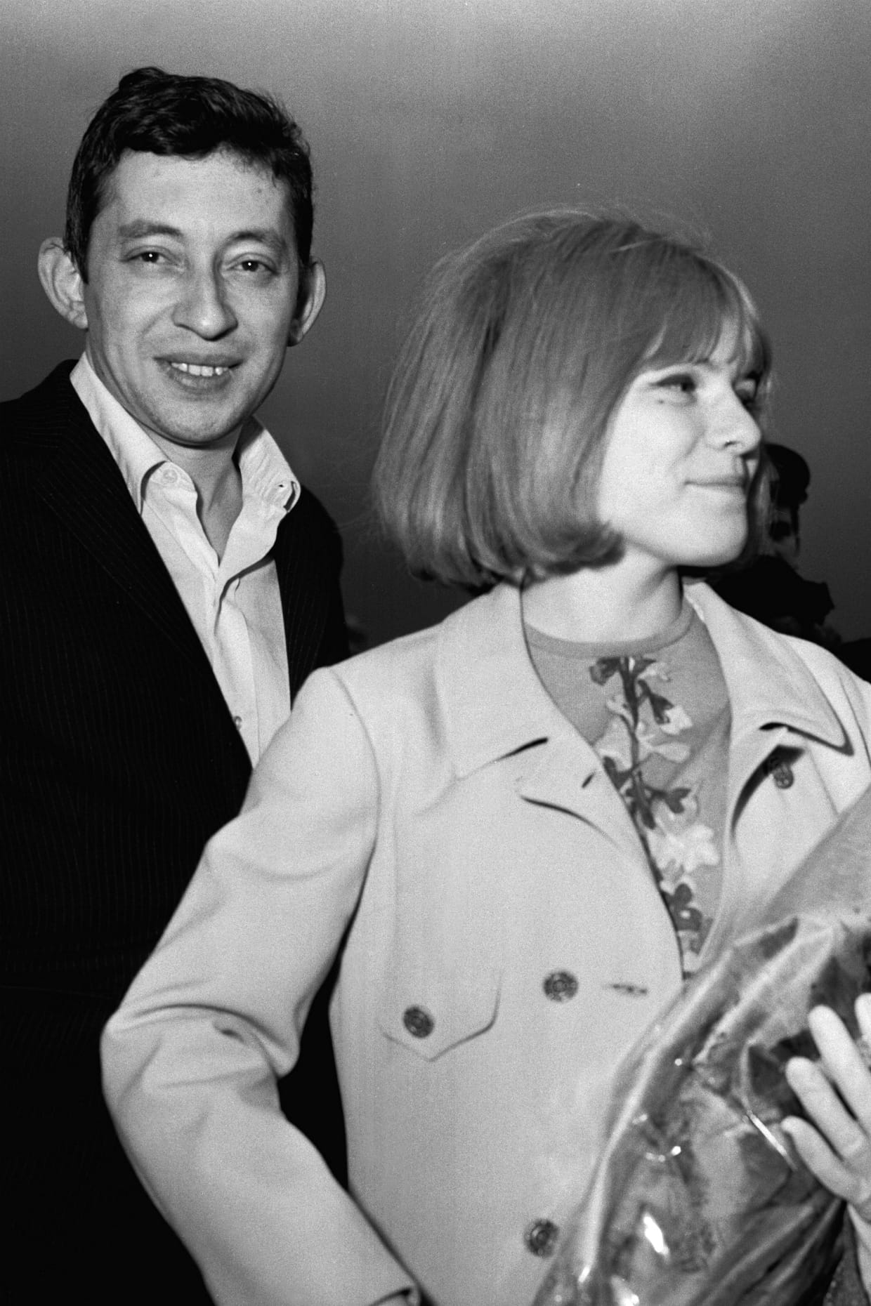 France Gall en trench beige avec Serge Gainsbourg en Italie en mars 1968.