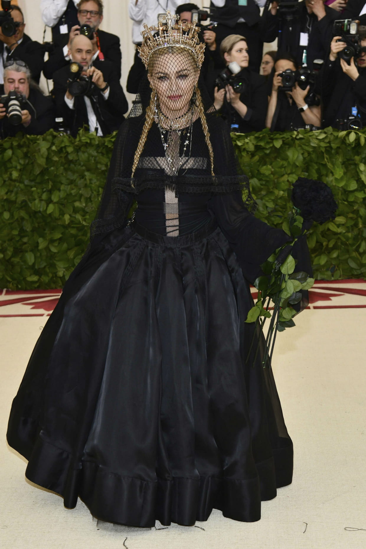 Madonna en longue robe noire lors du Met Gala à New York le 7 mai 2018.