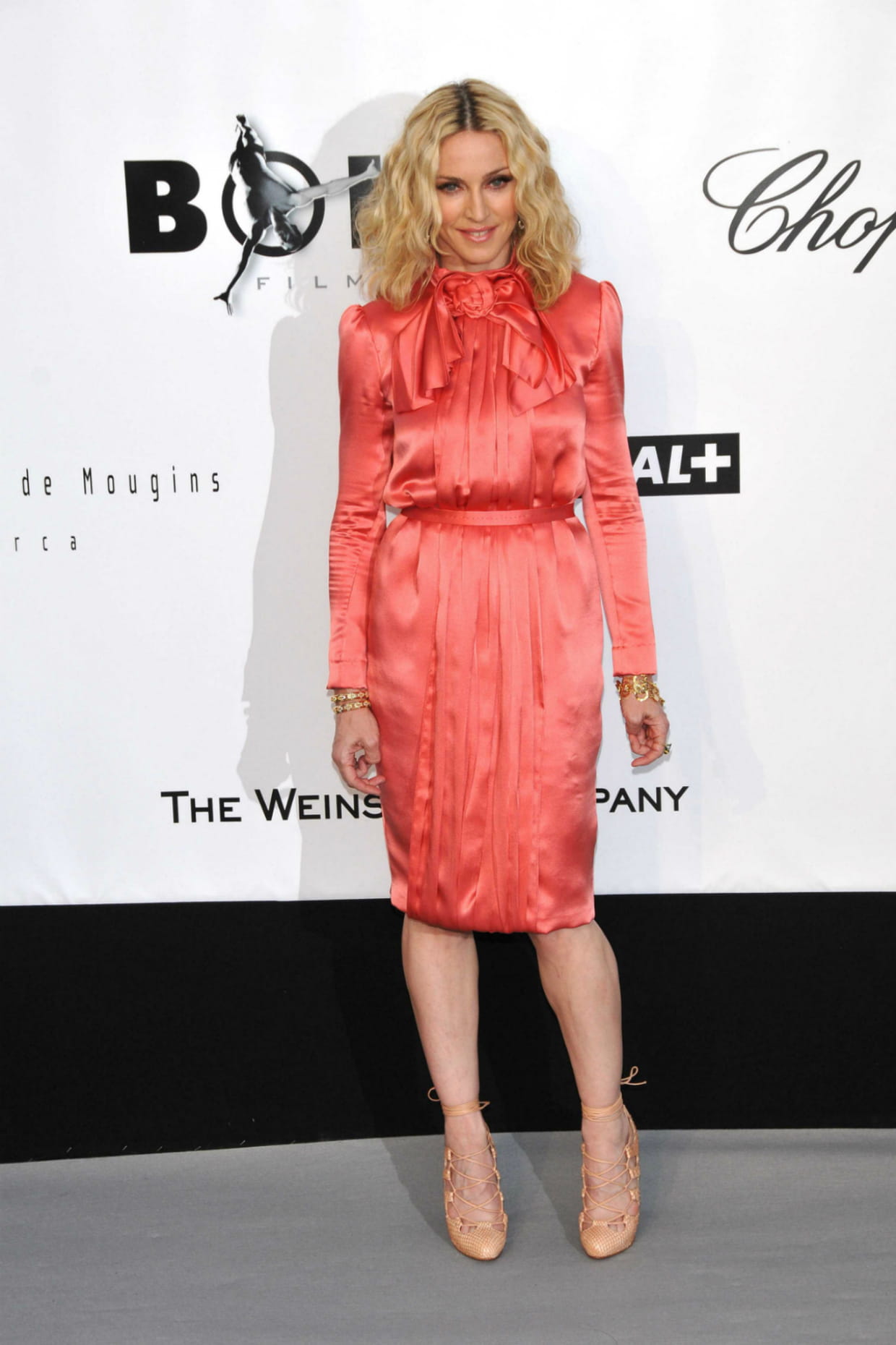 Madonna en robe corail satinée à Cannes le 22 mai 2008.