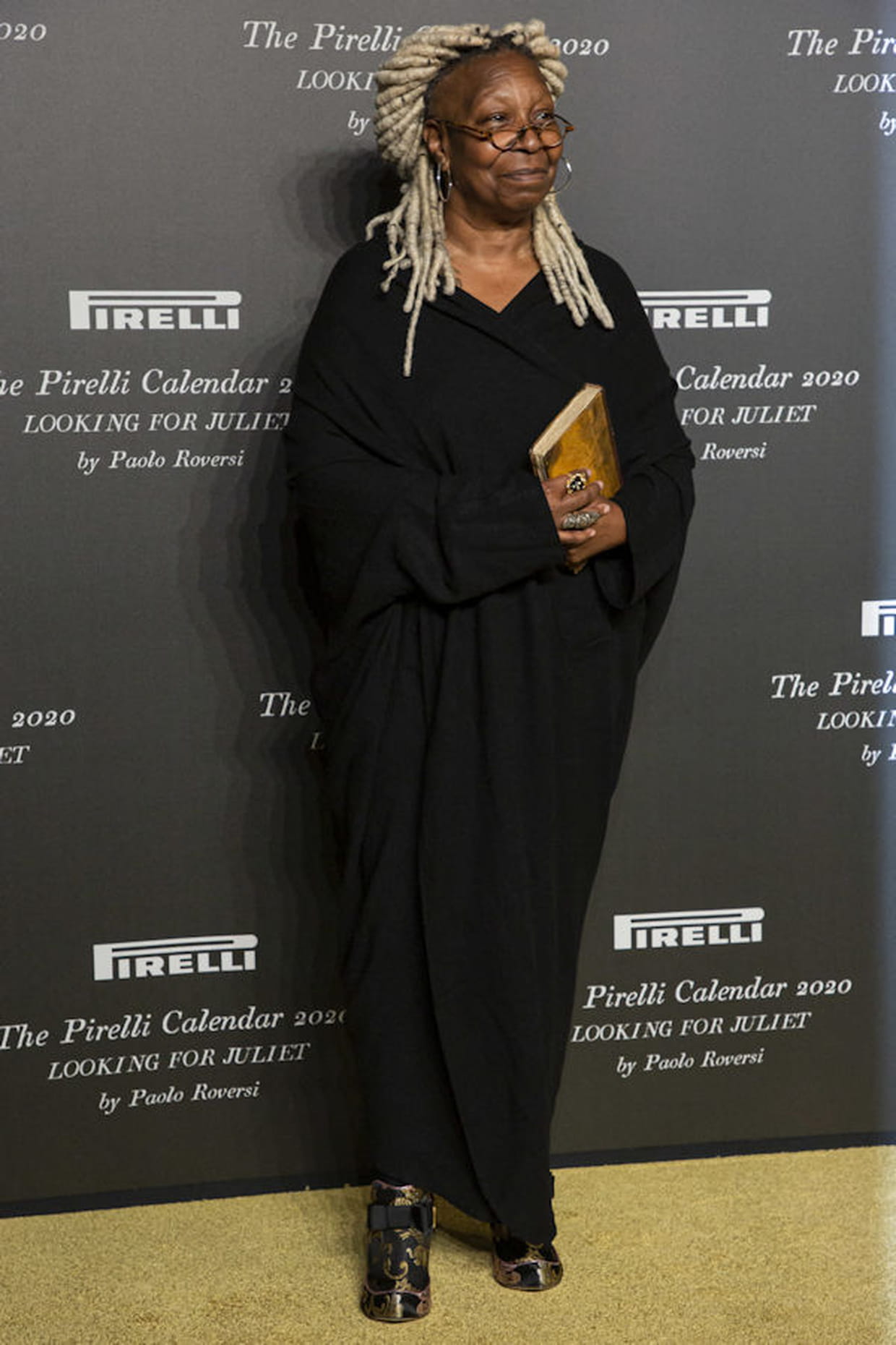 Whoopi Goldberg en robe noire au Pirelli Calendar Presentation à Vérone le 3 dcembre 2019.
