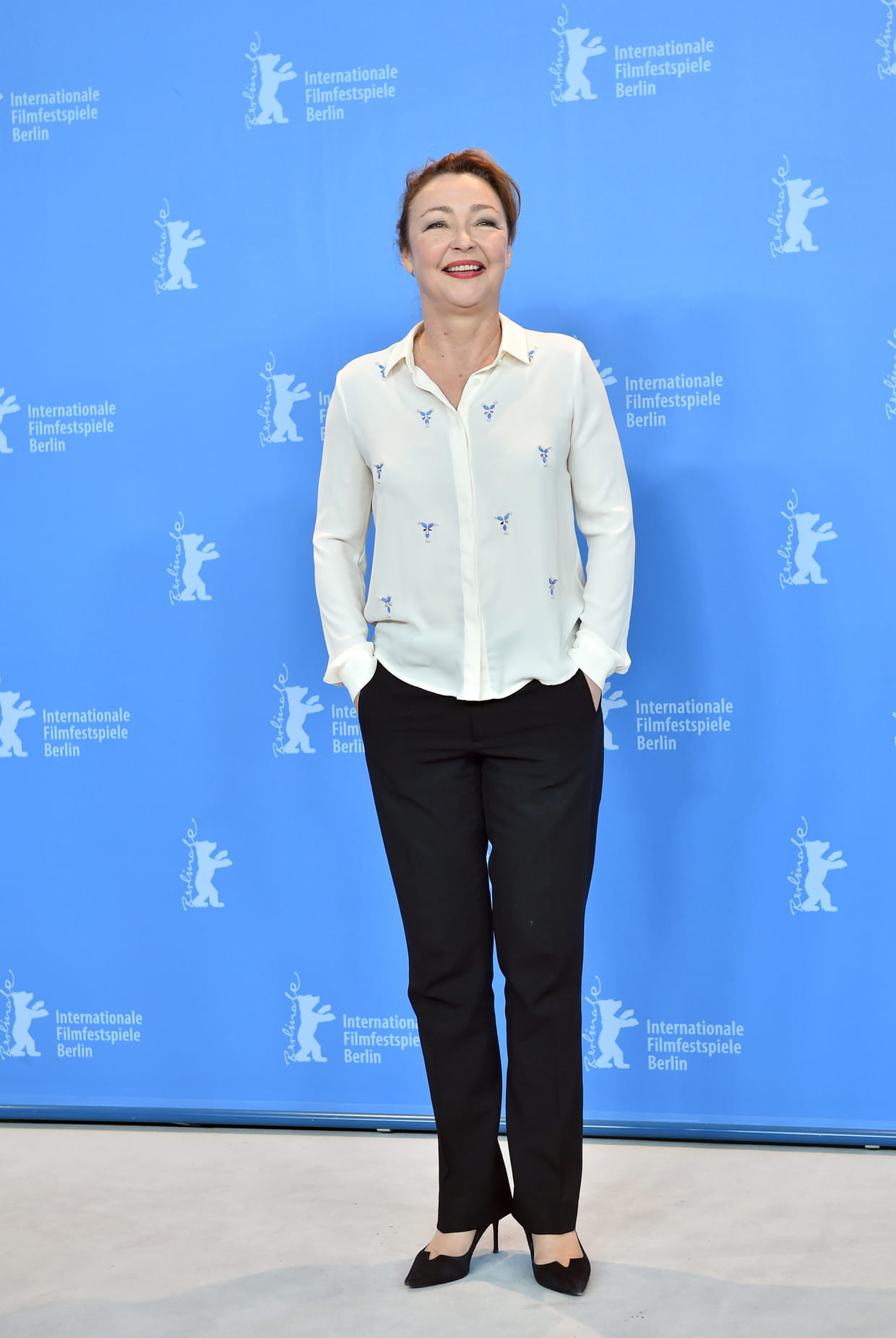 Catherine Frot (1956) en chemise blanche au 67ème Festival international du cinéma à Berlin le 14 février 2017.