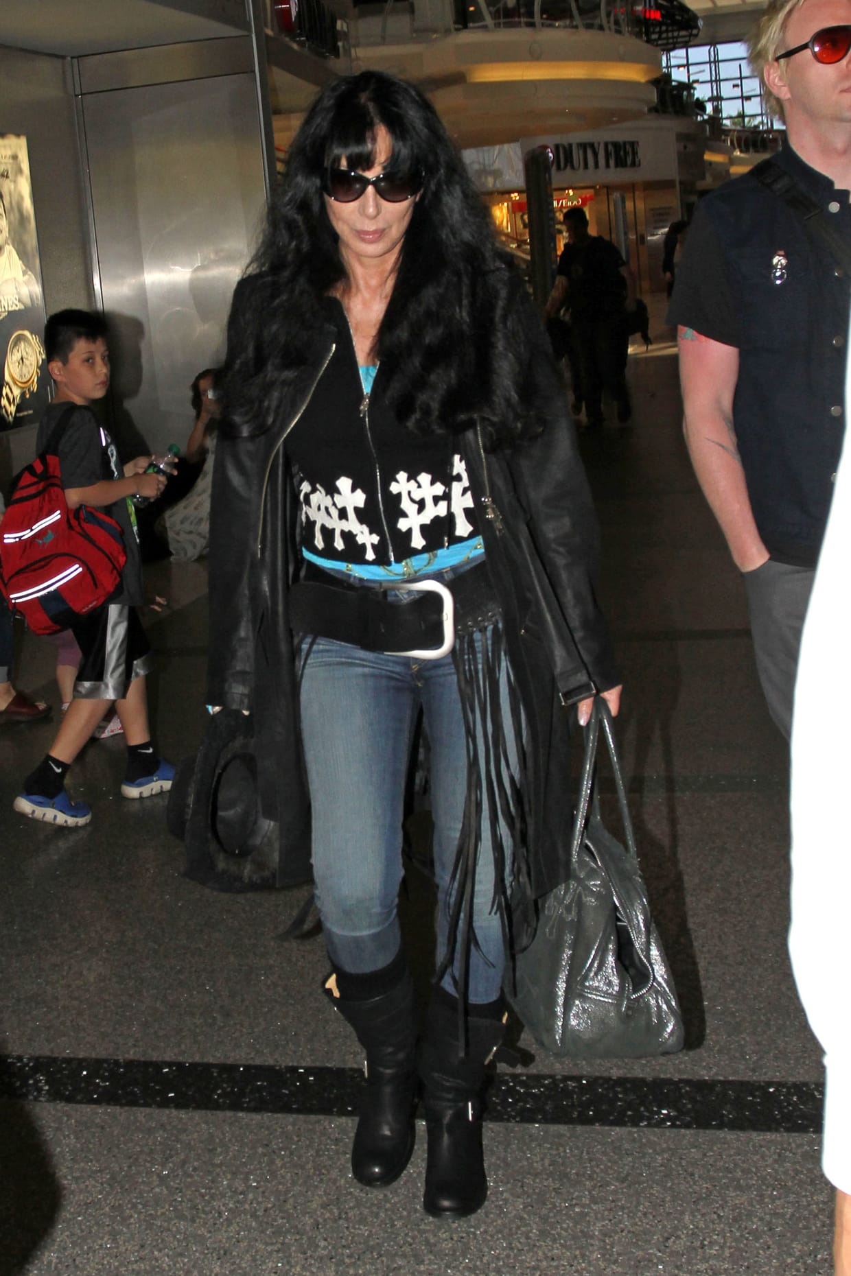 Cher (1946) en jean slim et bottines motardes à Los Angeles le 29 mai 2013.