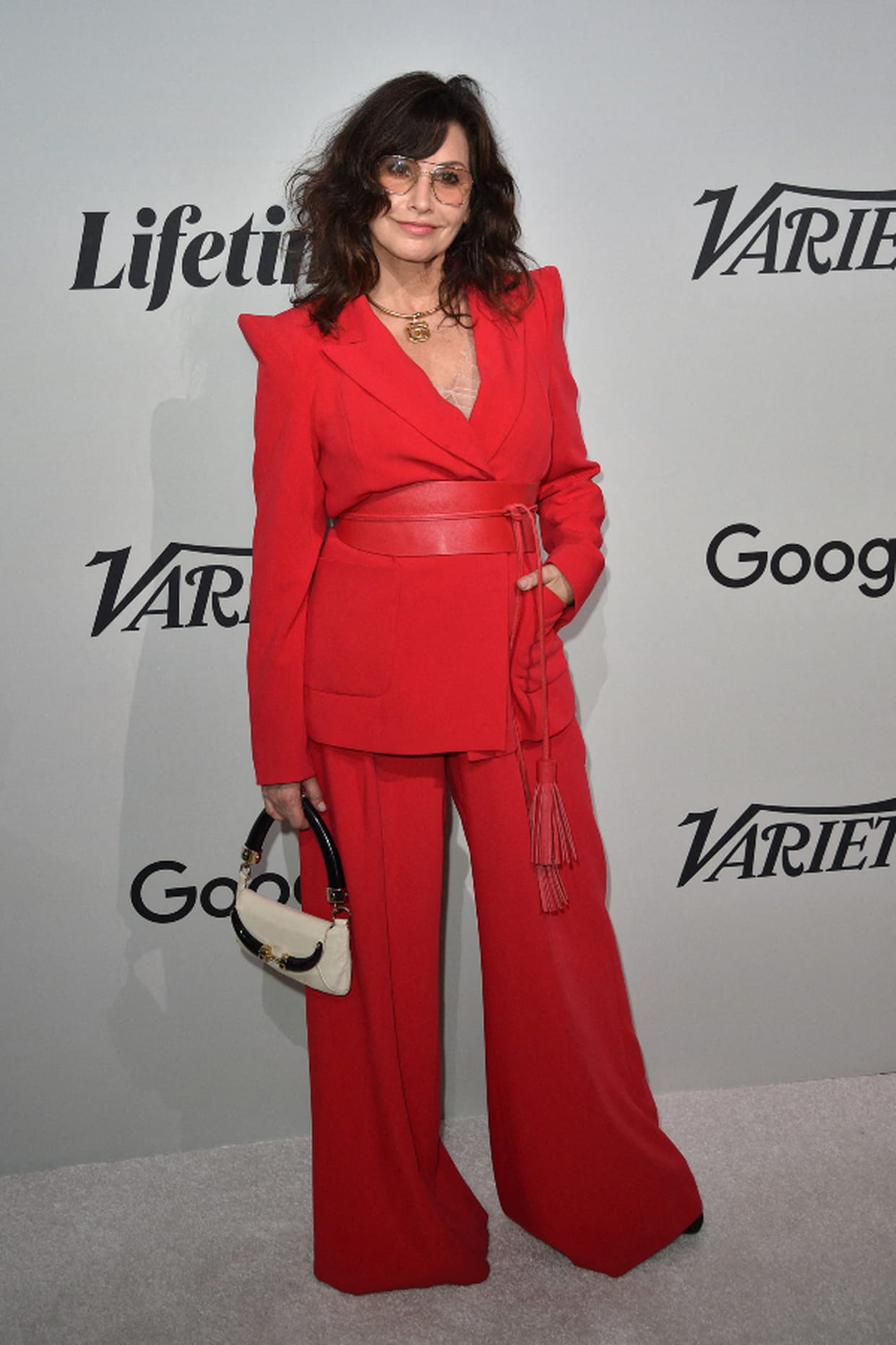 Gina Gershon (1962) en ensemble rouge lors de la cérémonie du magazine Variety Power of Women à New York le 5 mai 2022.