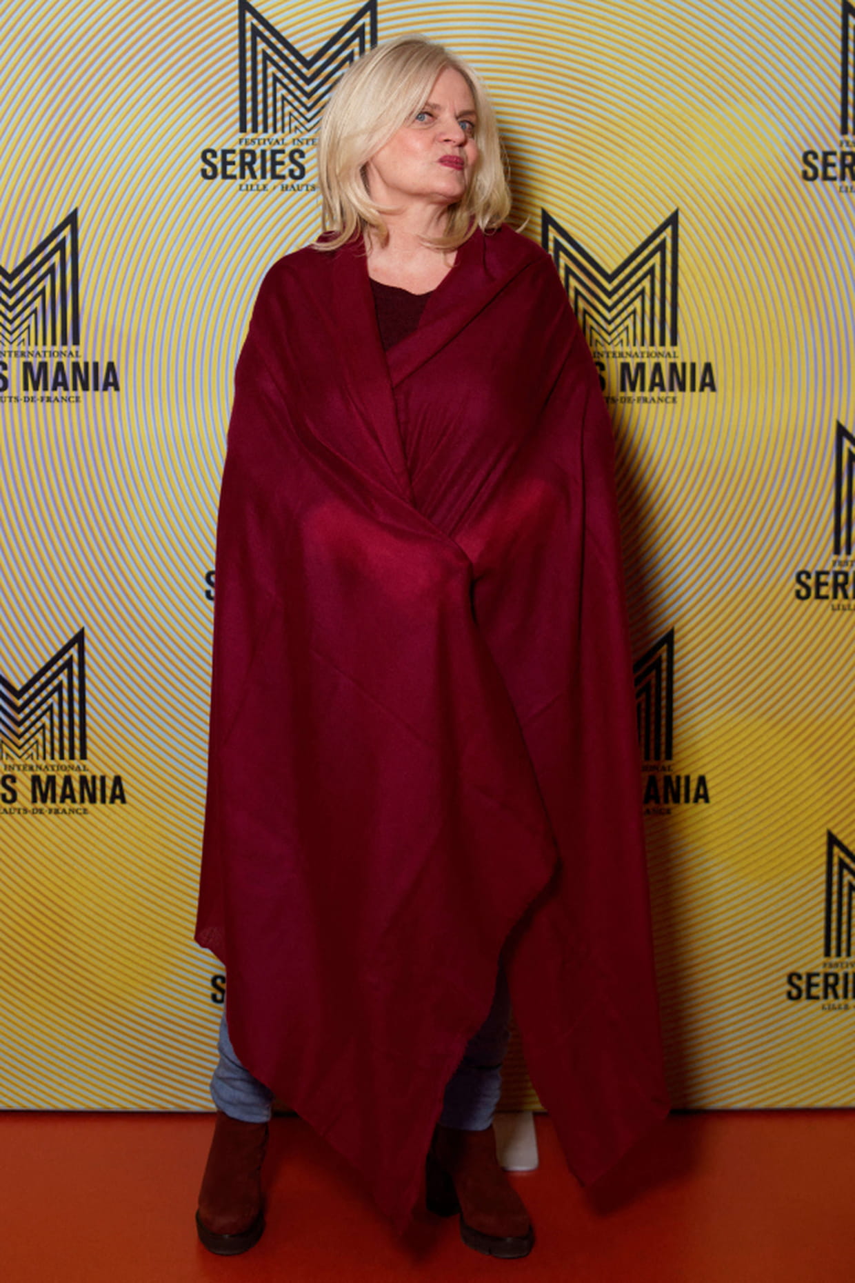 Isabelle Nanty (1962) en étole rouge lors du Festival Séries Mania à Lille le 23 mars 2022.
