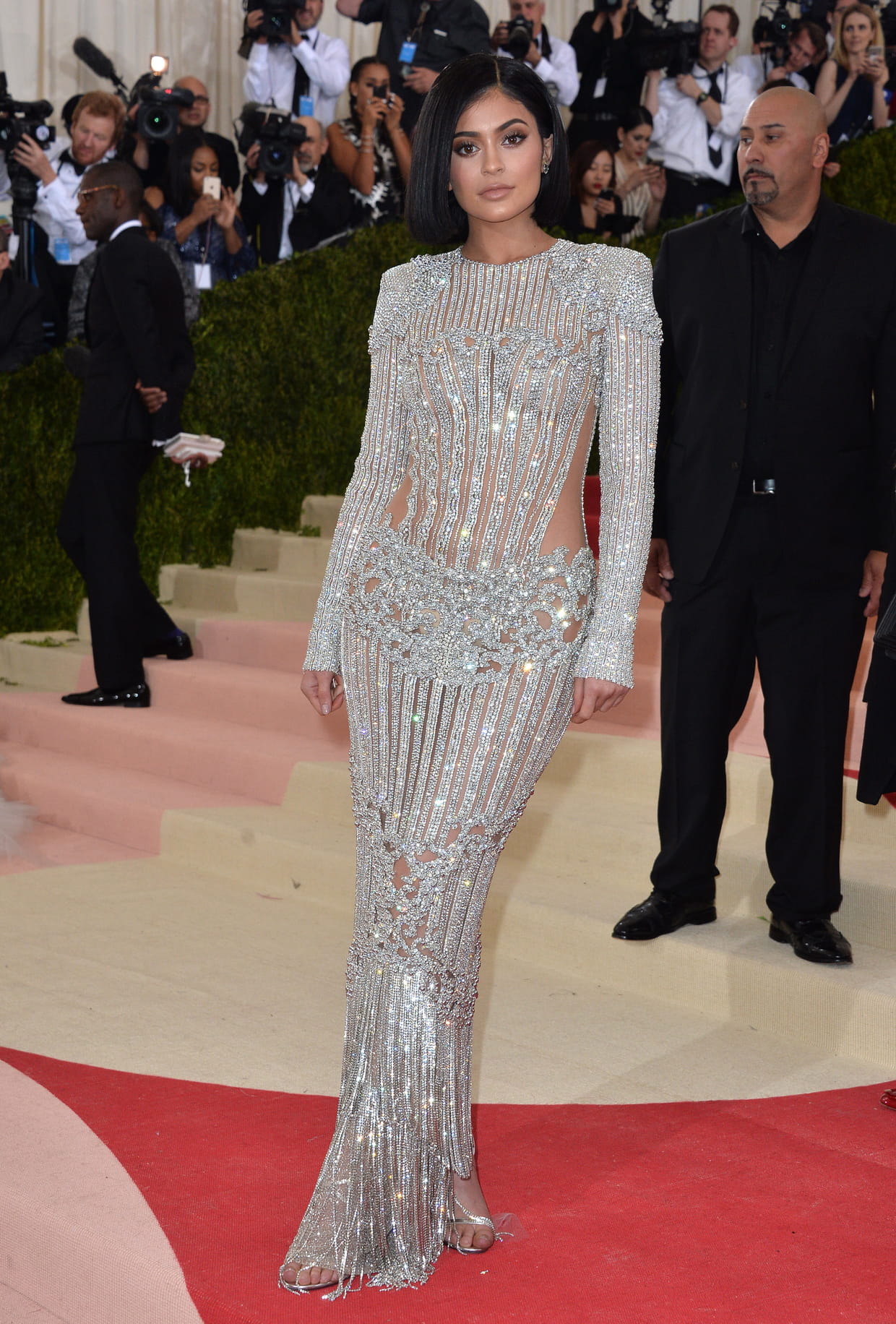 Kylie Jenner en robe argentée à paillettes au Met Gala en 2016.