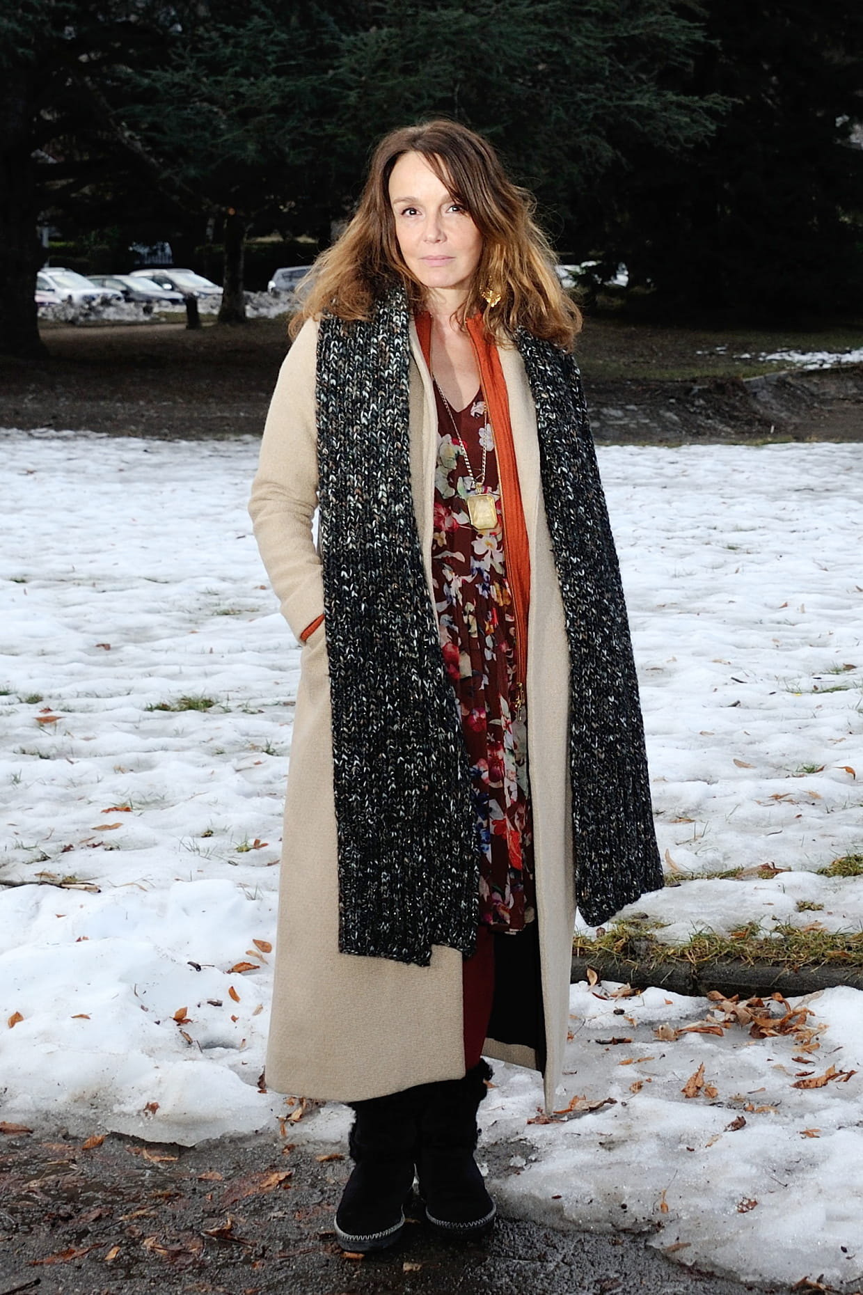 Philippine Leroy-Beaulieu en manteau beige et écharpe XXL grise au 19ème festival des créations télévisuelles à Luchon le 2 février 2017.