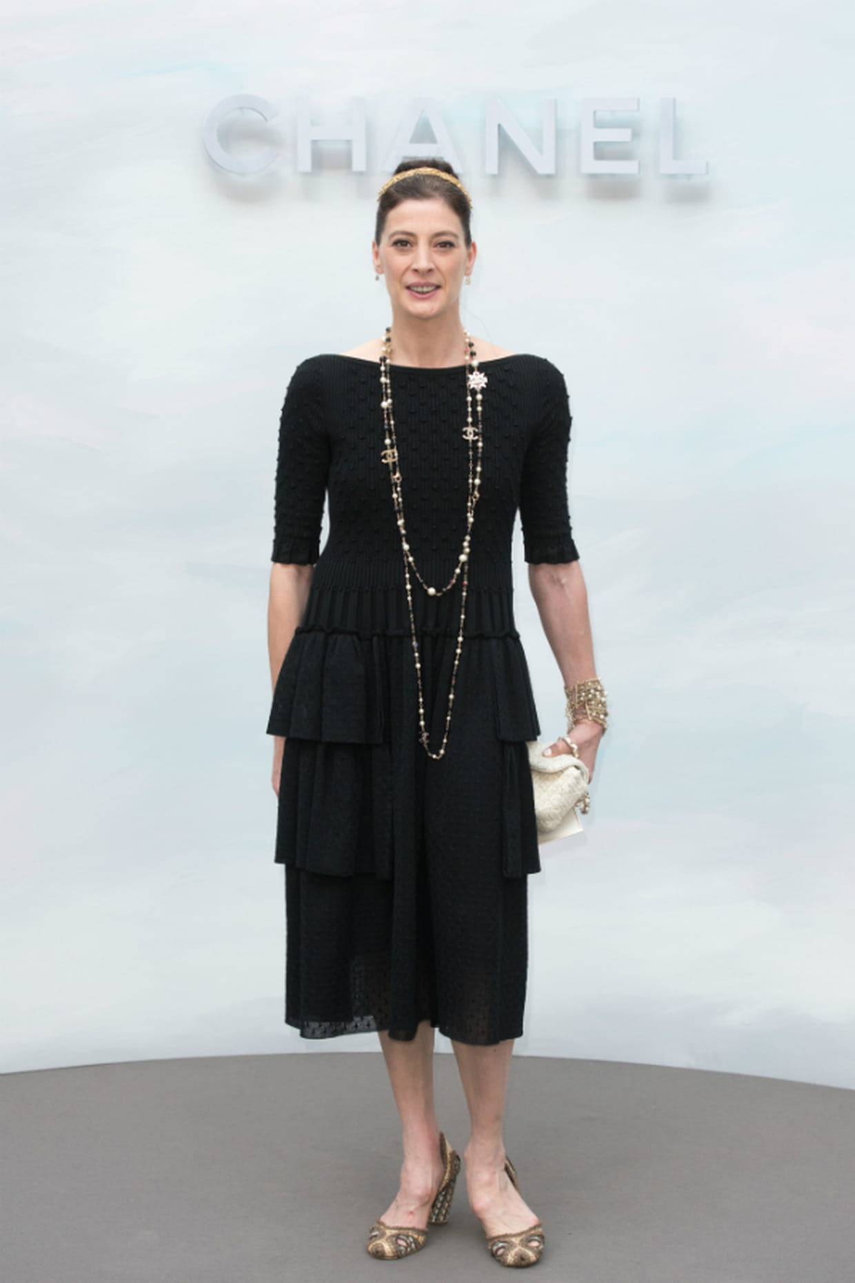 Marie-Agnès Gilot en Chanel pour le défilé haute couture automne-hiver 2018-2019 le 3 juillet 2018 à Paris